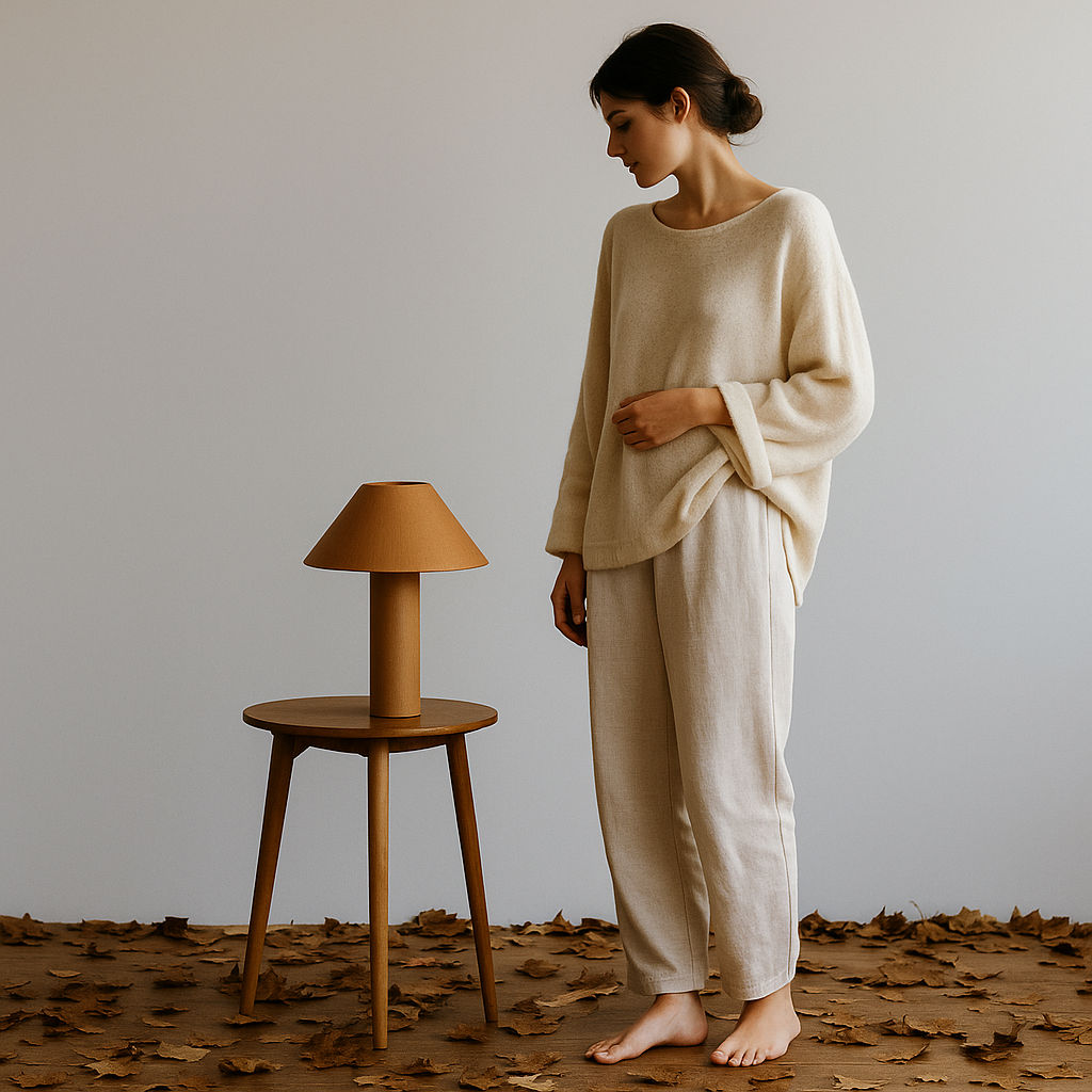 Su estética minimalista y versátil permite que se integre con naturalidad en salones, comedores, dormitorios o espacios de trabajo, aportando un toque moderno y acogedor.