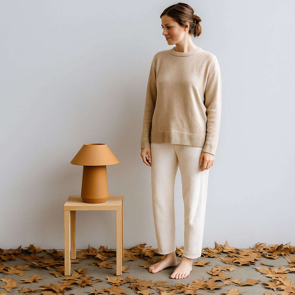 Su estética minimalista y versátil permite que se integre con naturalidad en salones, comedores, dormitorios o espacios de trabajo, aportando un toque moderno y acogedor.