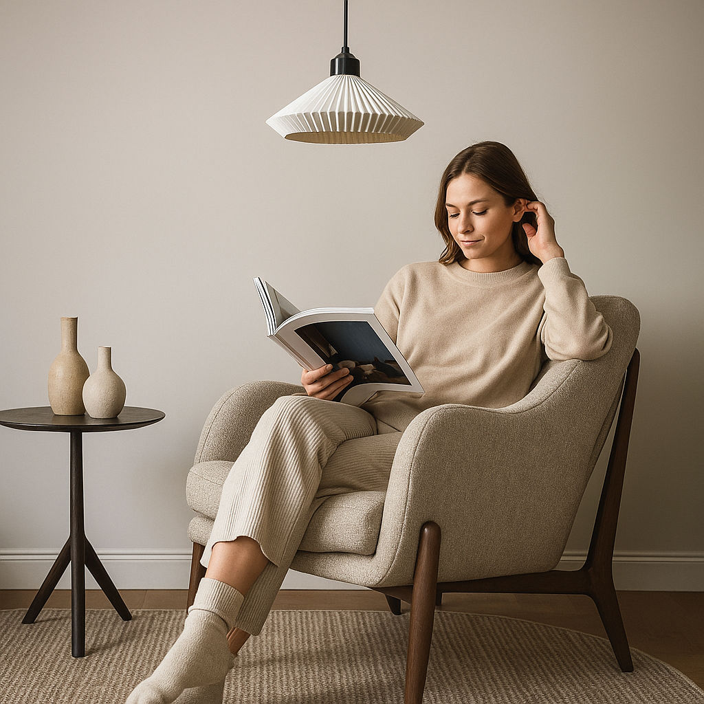 Su estética minimalista y versátil permite que se integre con naturalidad en salones, comedores, dormitorios o espacios de trabajo, aportando un toque moderno y acogedor.